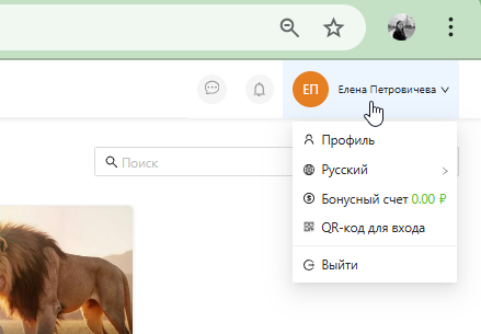 - в личном кабинете в верхнем правом углу наудите значок в Вашим ФИО и нажмите на него.