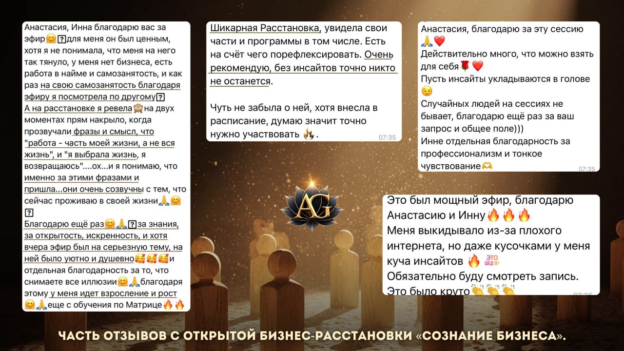 Запись Открытого эфира по бизнес расстановкам с индивидуальной расстановкой для Анастасии Гапон с Инной Завадской